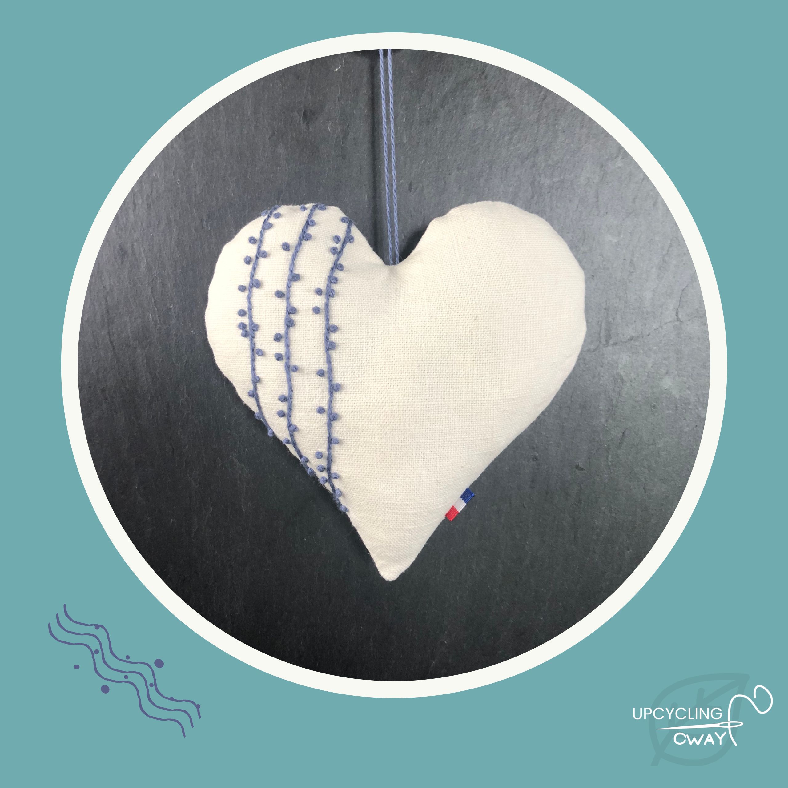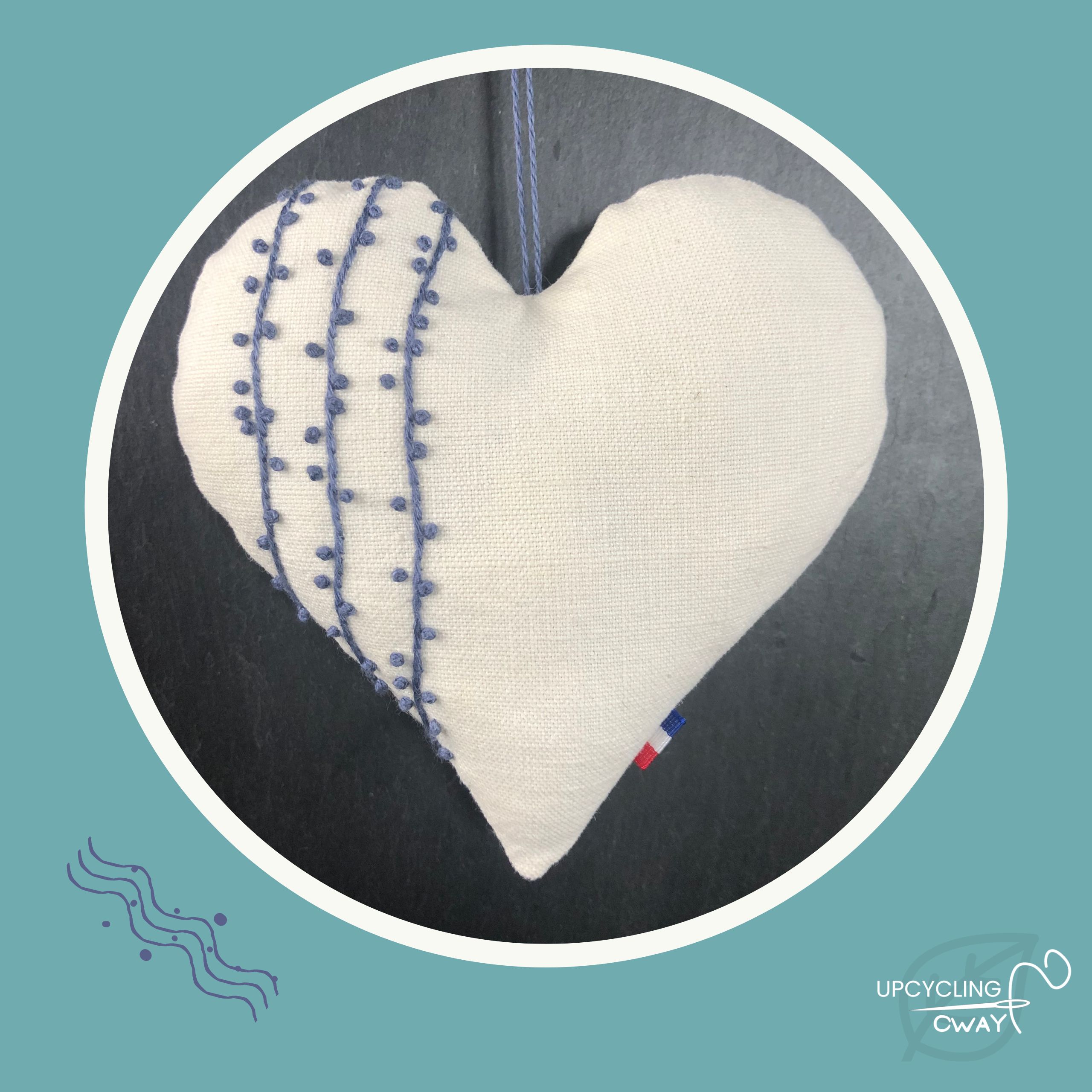 Grand Cœur brodé main en tissu recyclé