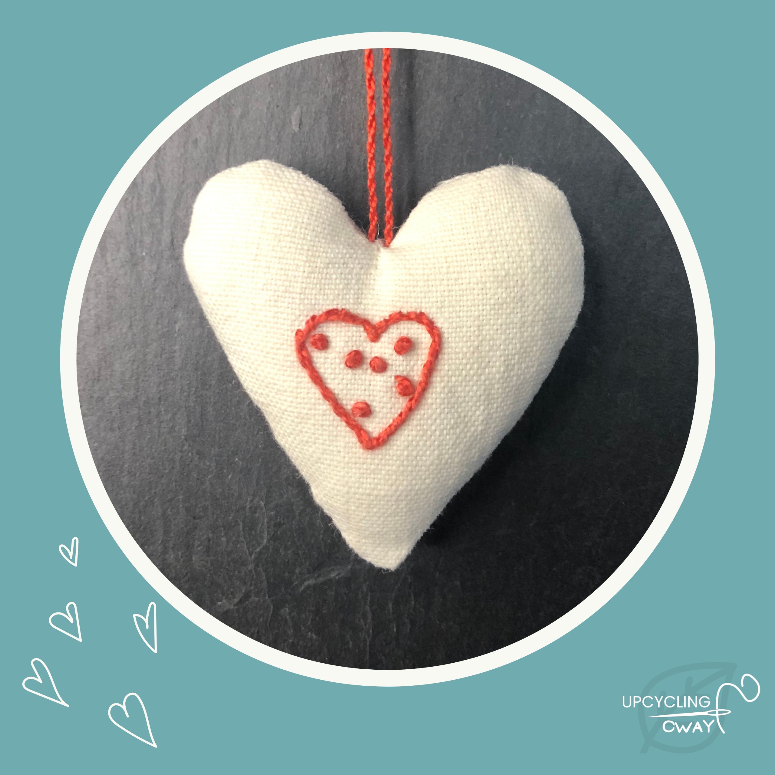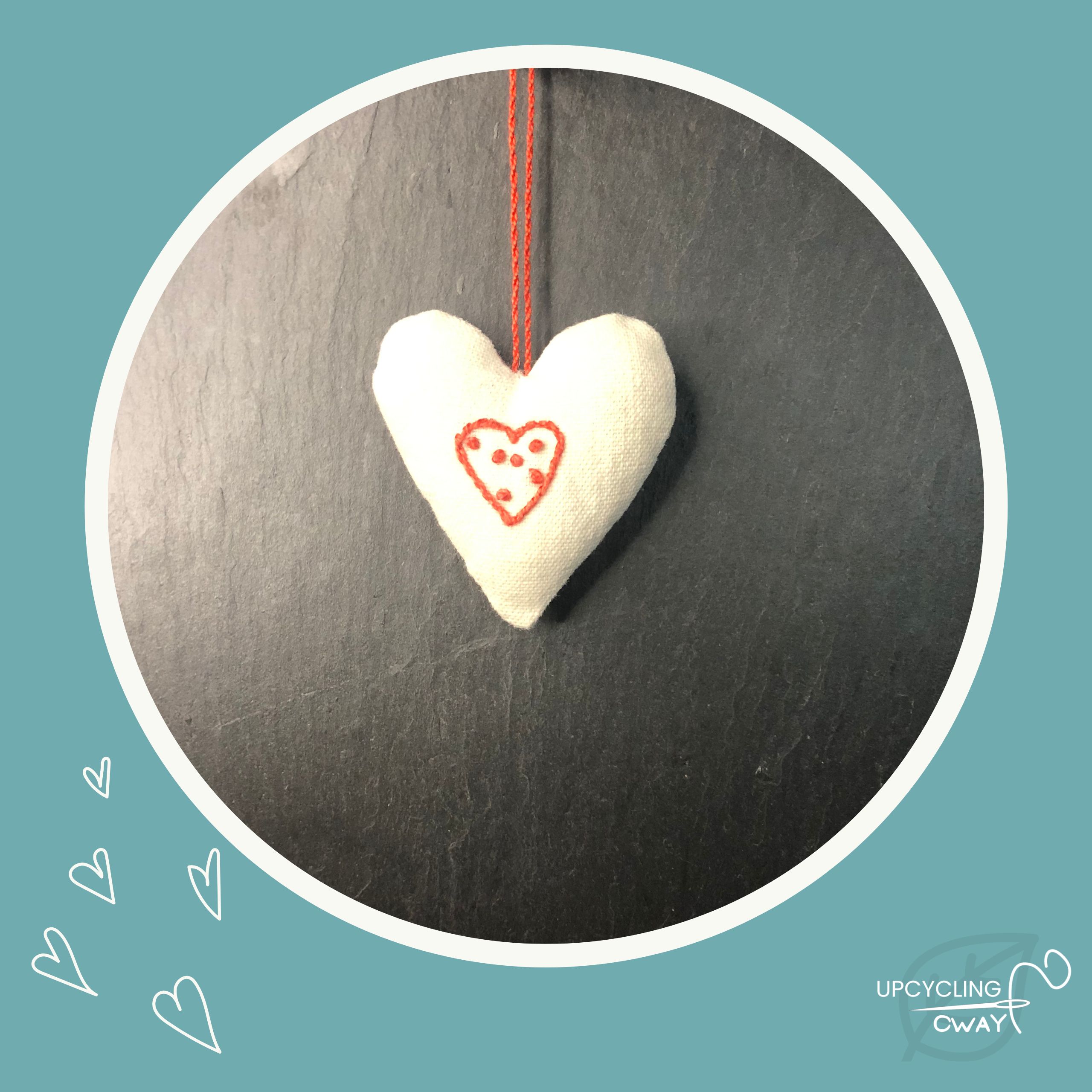Mini Cœur en tissu recyclé brodé main