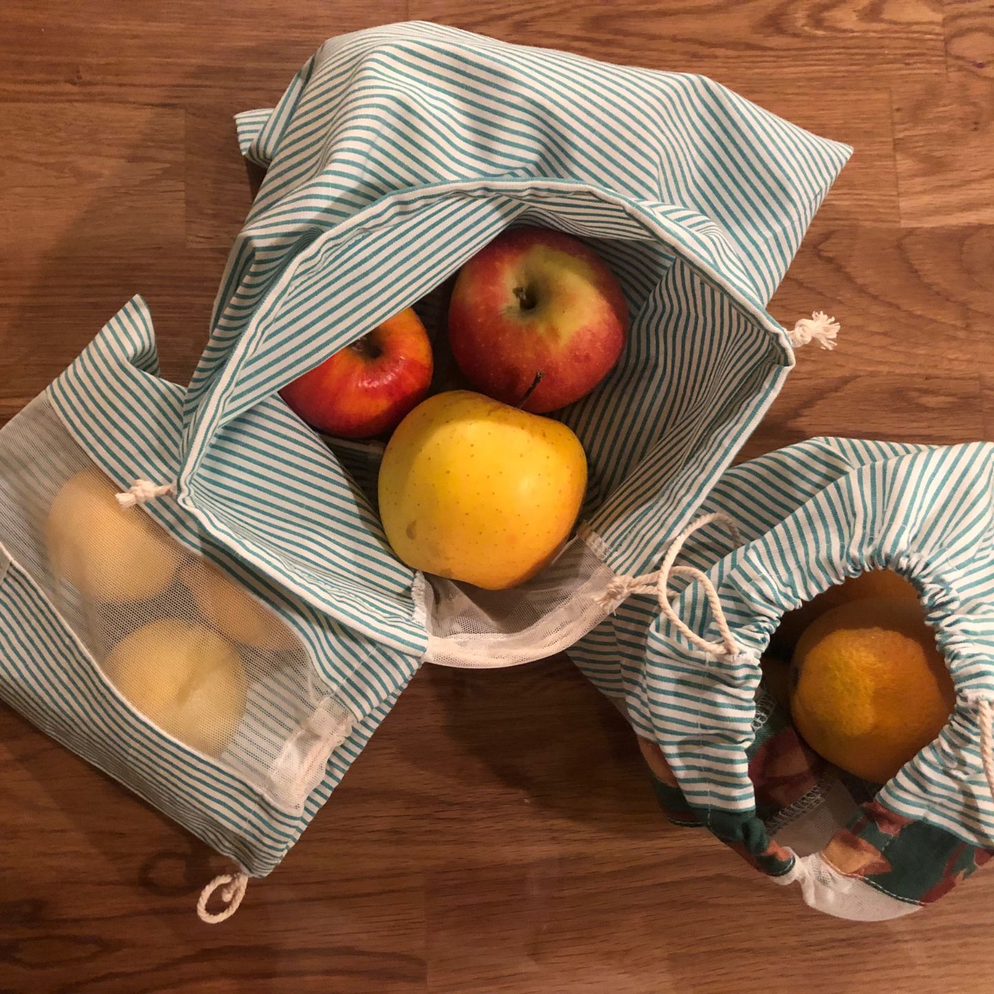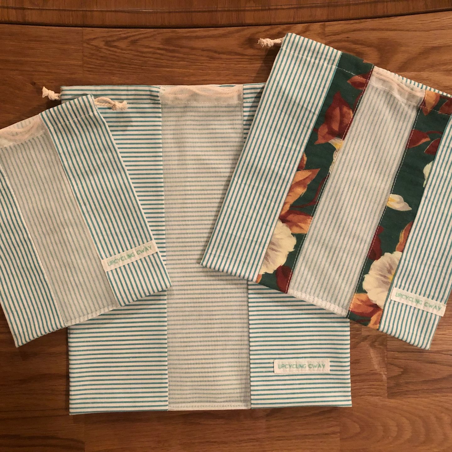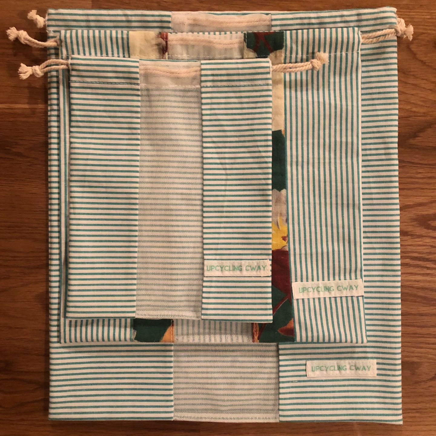Découvrez notre collection de sacs à vrac en tissu upcyclé, disponibles en trois tailles (Petit, Moyen, Grand) pour s’adapter à tous vos besoins de rangement et d’achat en vrac. Chaque sac est fabriqué à partir de tissus recyclés de haute qualité, soigneusement sélectionnés pour leur durabilité et leur style unique. Avec des motifs variés et des coloris naturels, ces sacs écoresponsables sont à la fois pratiques et esthétiques pour transporter fruits, légumes, céréales et bien plus encore.